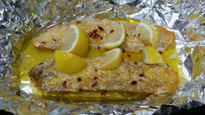Fold the foil over the fish to create a parcel and cook for 10 minutes