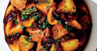 - Bring to the boil, cover and simmer for 25 minutes or until the potatoes and pork are cooked throughout. Serve immediately.
