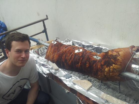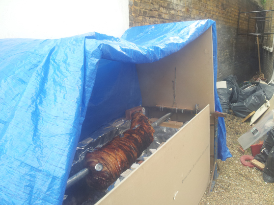 Although Skinny’s rolling joints for the pole were another spot of genius, it did mean that every 10-15 minutes for 12 hours we had to manually turn the pig. It was also a two man job. Labour heavy, sure. Would it be worth it? Absolutely.