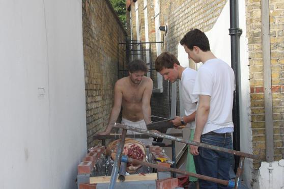 There is a healthy element of debate between the three of us (Skinny Pete, Pete Croft Baker and I) as to who’s idea this was in the first place. I can only vouch for my portion (Michael Pollan) but, if there is an ancient barbecue deity out there somewhere, I imagine he had a greasy hand to play in bringing us all together with a glorious vision. To roast a whole hog on a homemade BBQ in a small Brixton front garden.